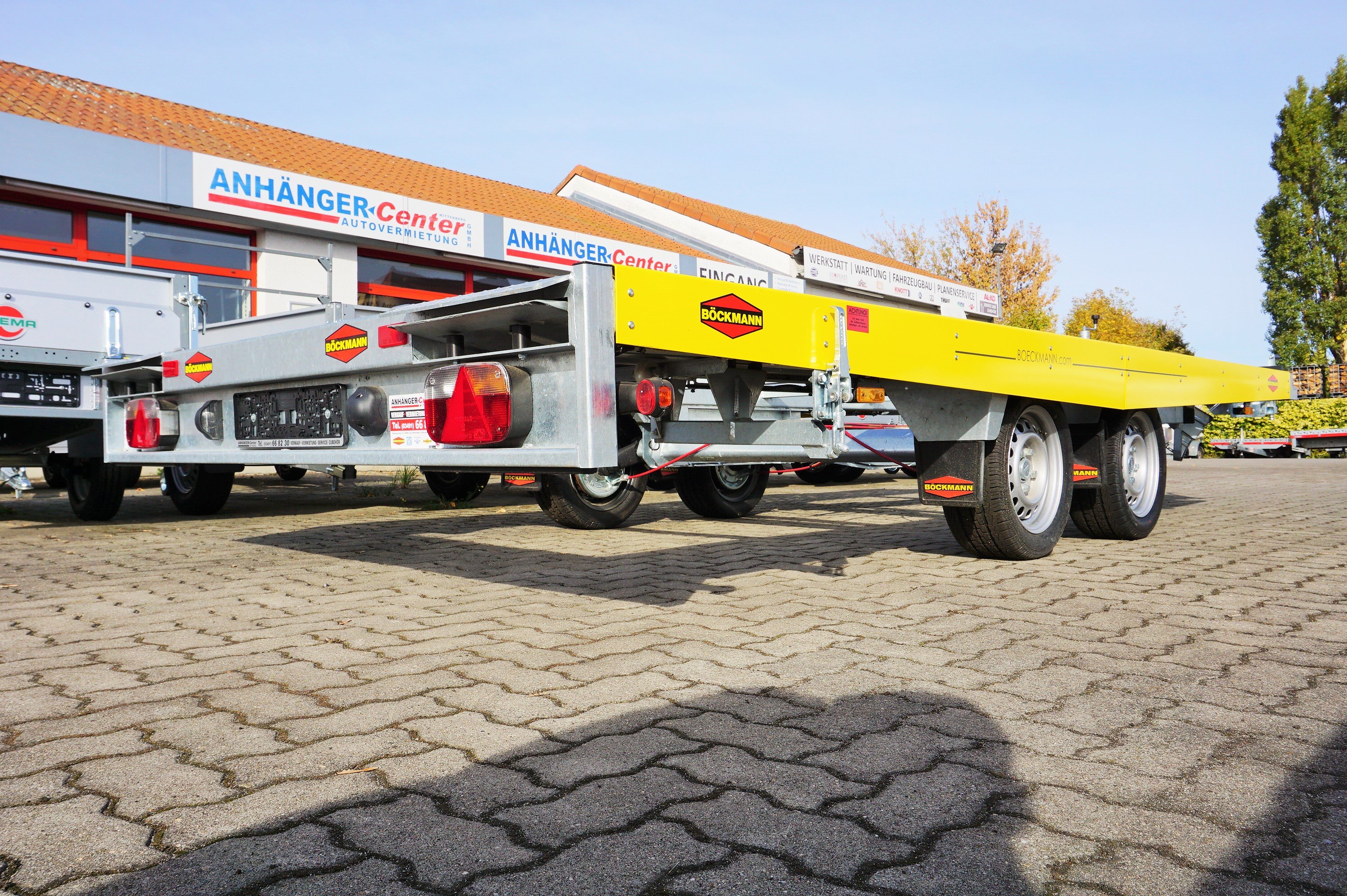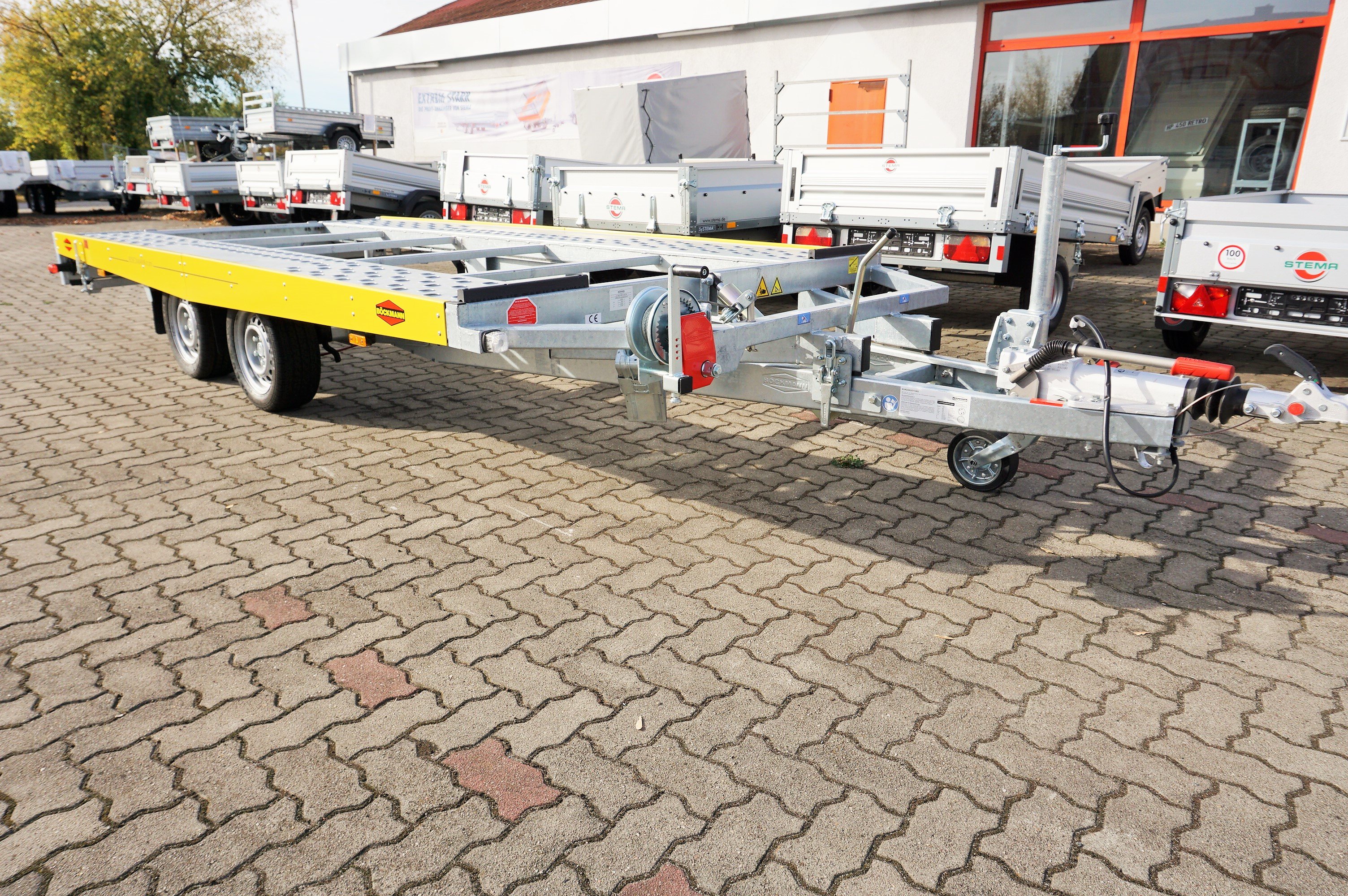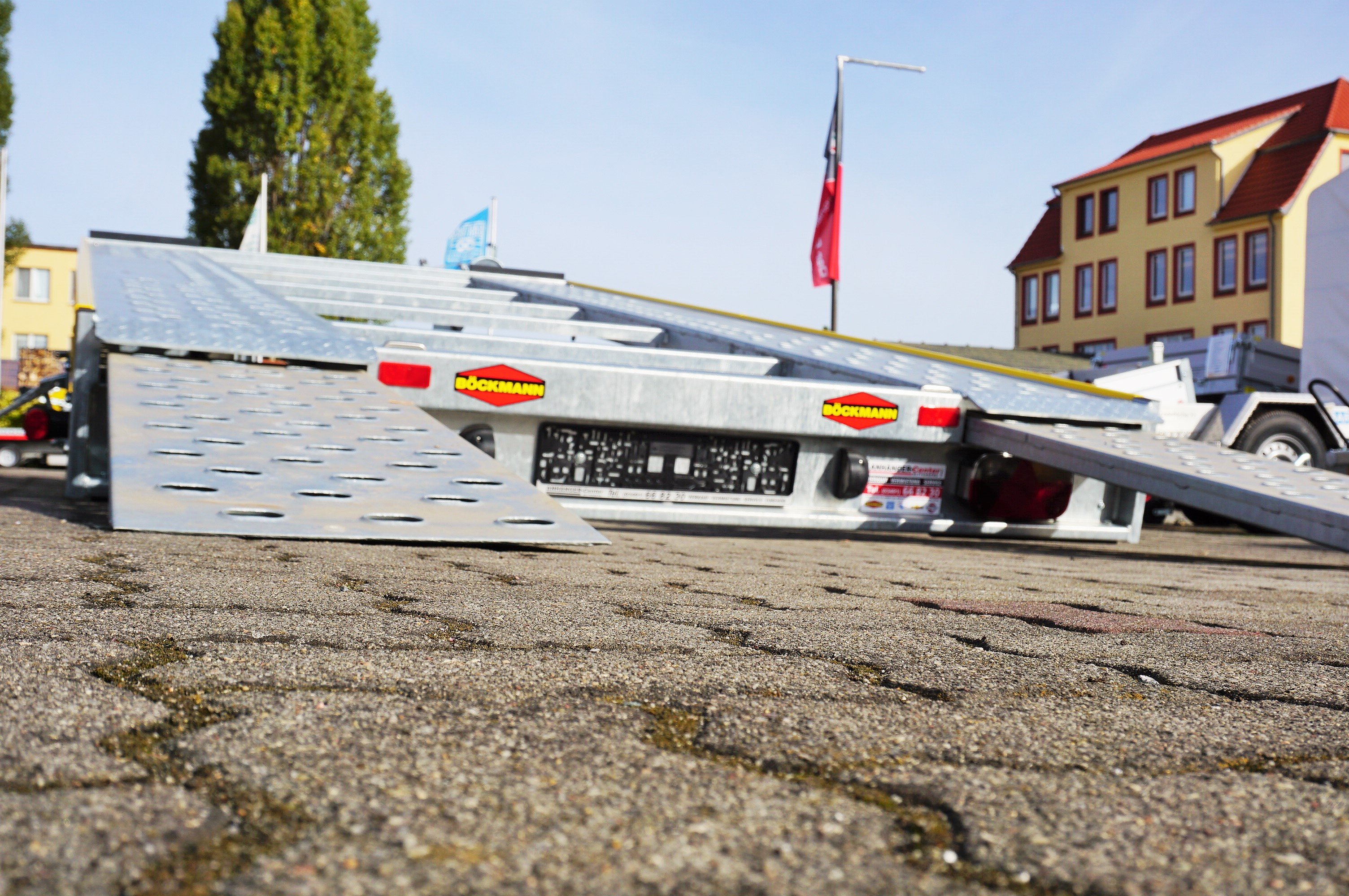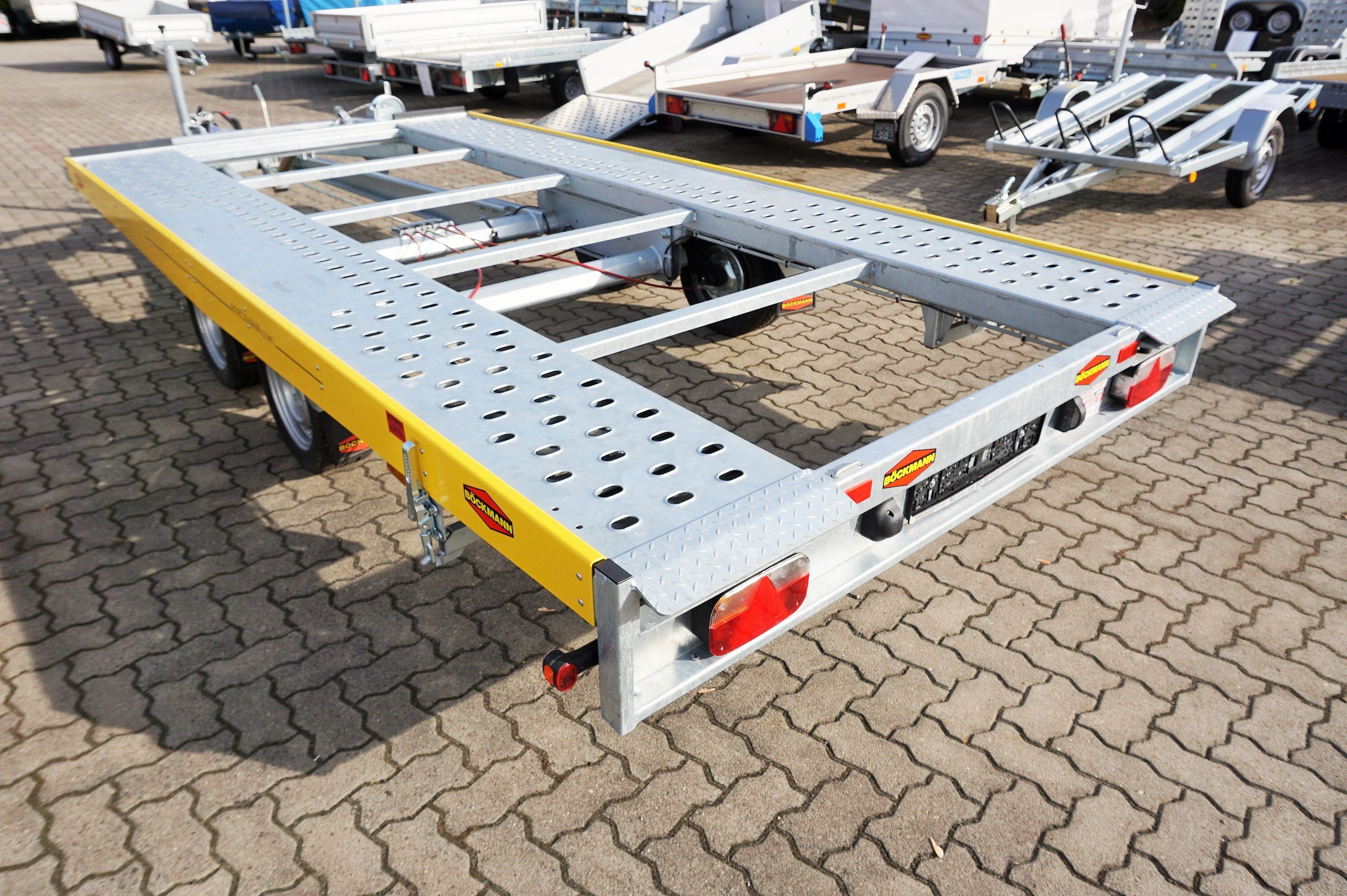 Böckmann Autotransporter oder Fahrzeugtransportanhänger als Hochlader.