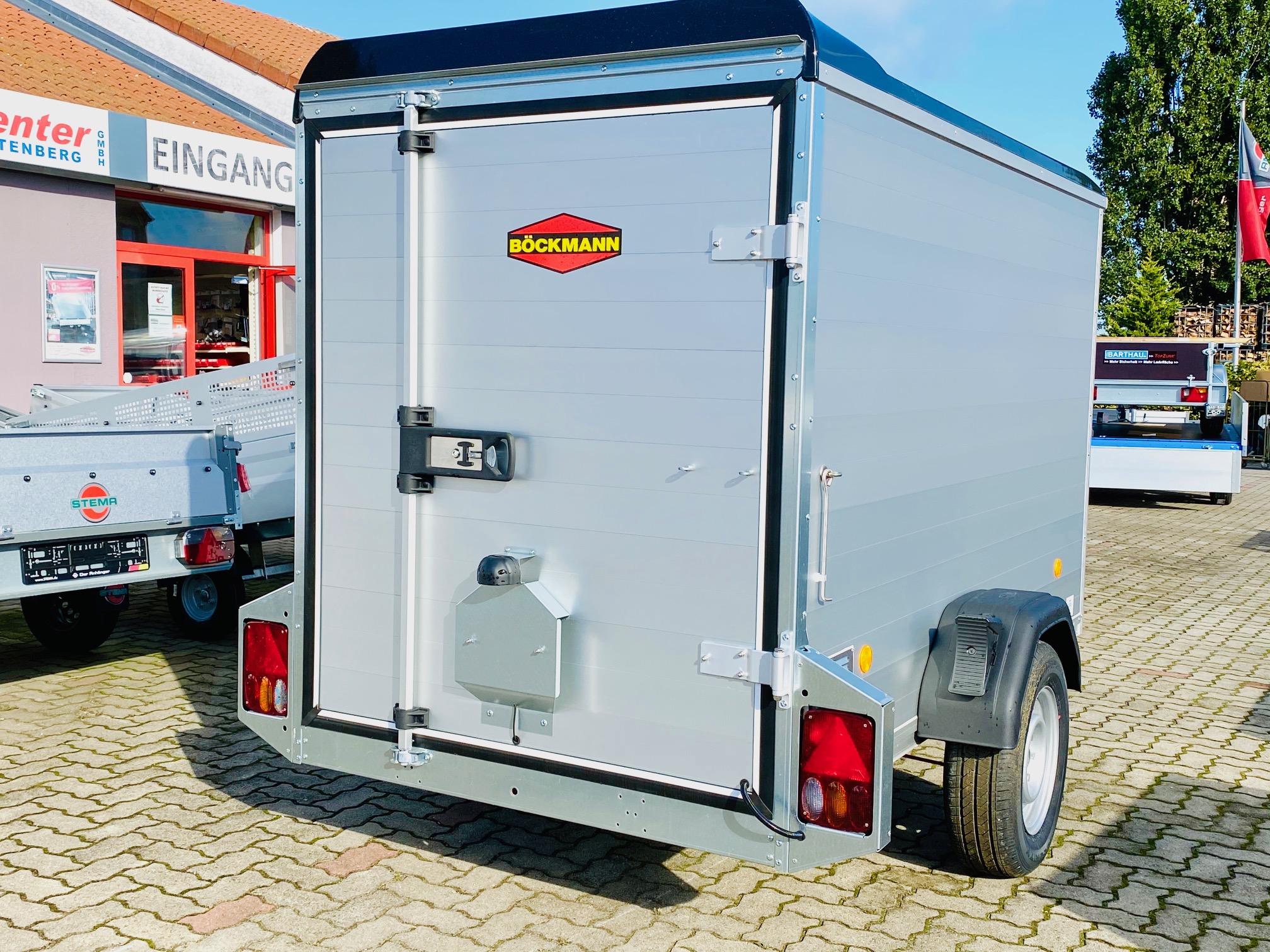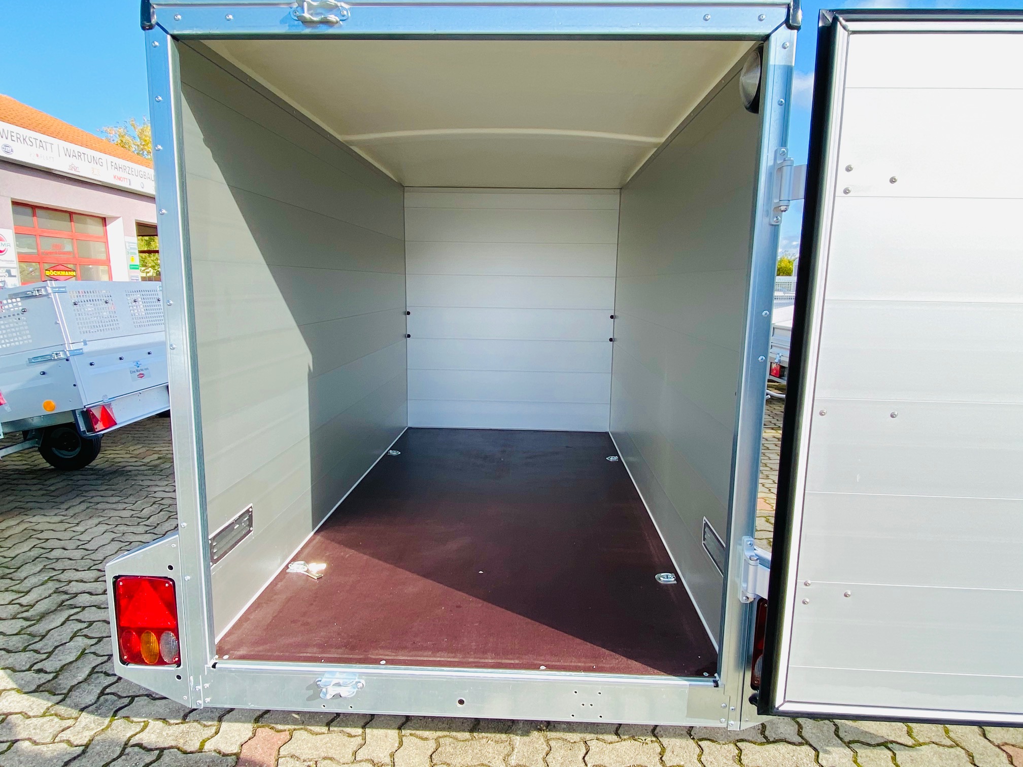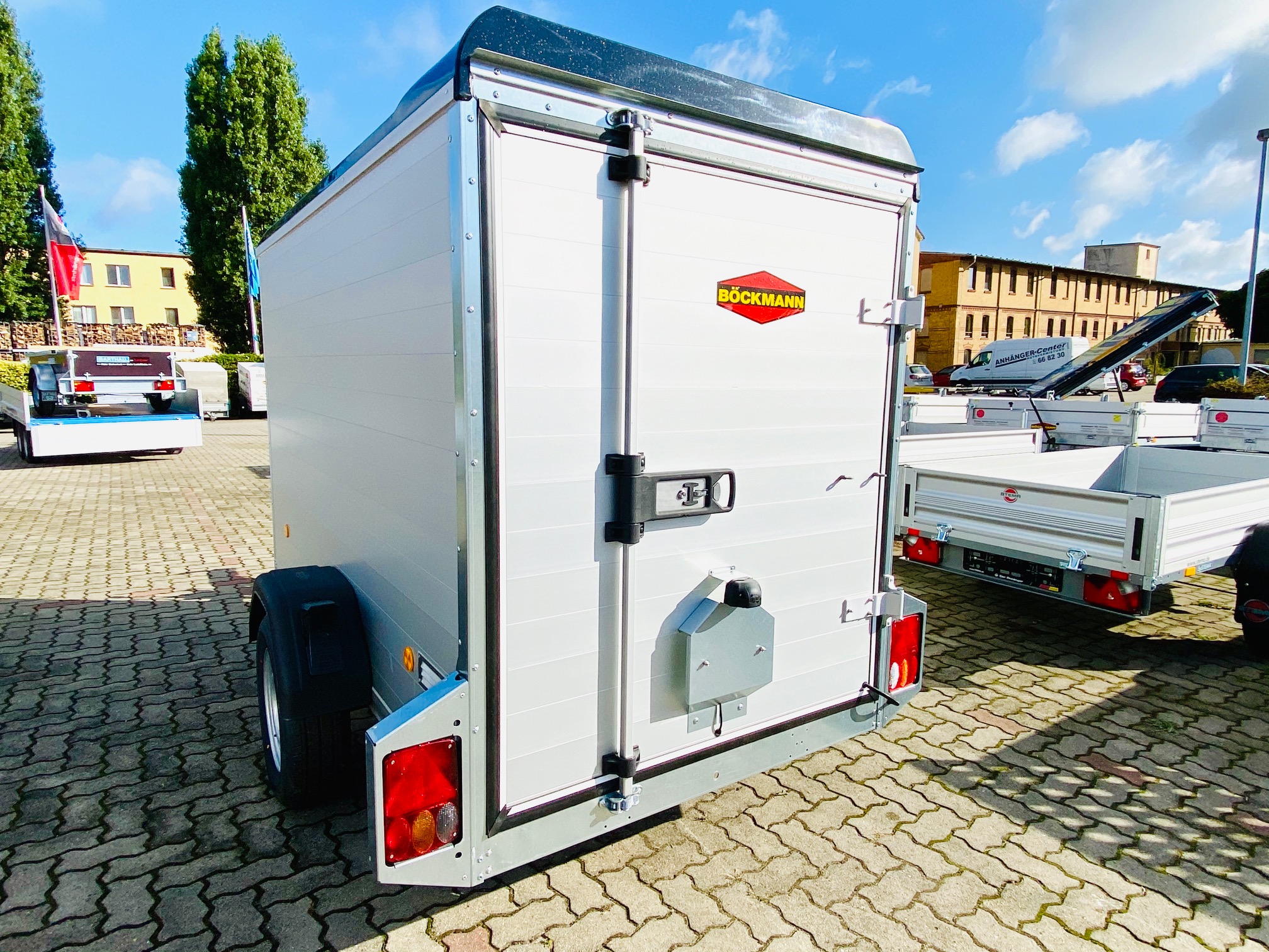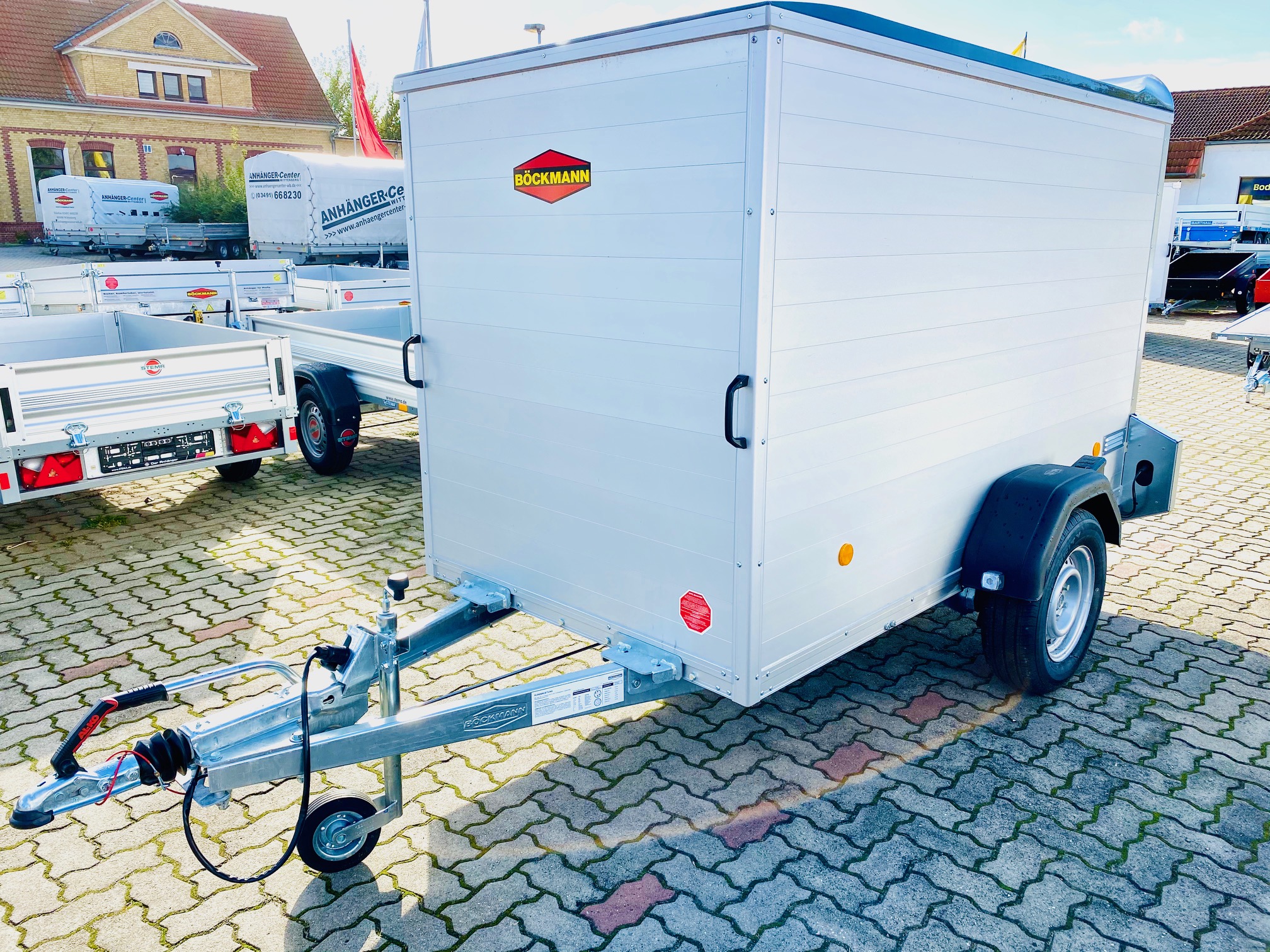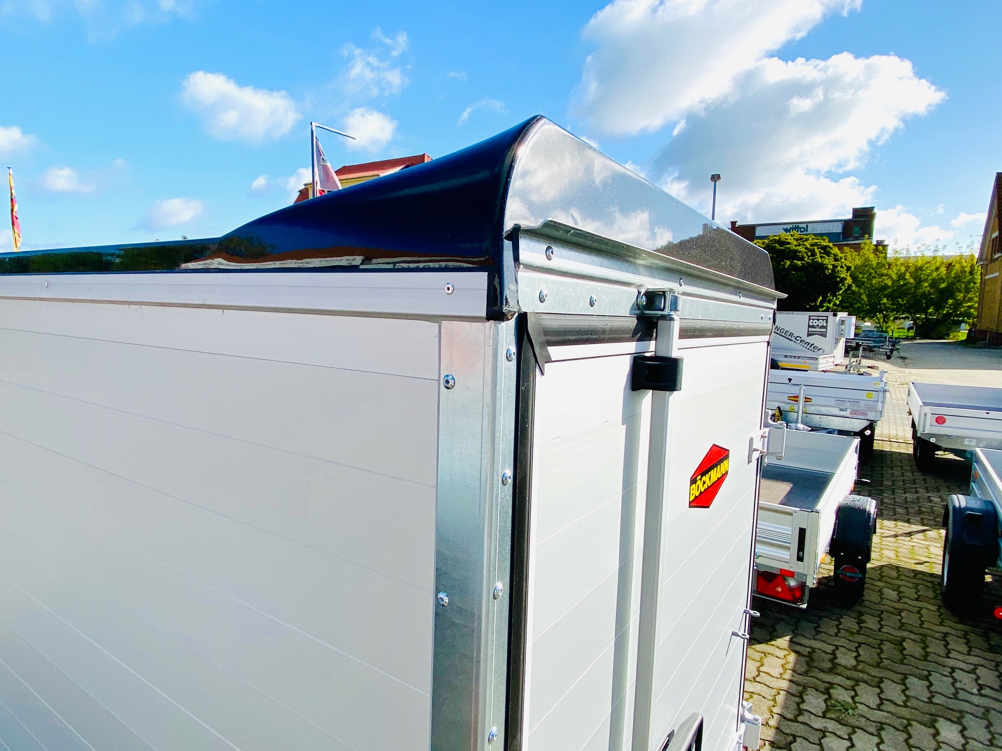 Hohe Stabilität, eine robuste Konstruktion und praktische Detaillösungen. Das sind genau die Eigenschaften, die den Böckmann Aluminium Kofferanhänger ausmachen. Komfort trifft auf Stabilität denn der Kofferanhänger KT-AL 2513/135 der F-Serie überzeugt vor allem durch seine robuste Konstruktion, dem Vollaluminium Aufbau und dem tiefergelegte Fahrgestell was für eine super Starßenlage steht. Außerdem sind die Anhänger mit einem hochwertigen Polyesterdach mit Spoiler und vielen weiteren praktischen Detaillösungen ausgestattet.